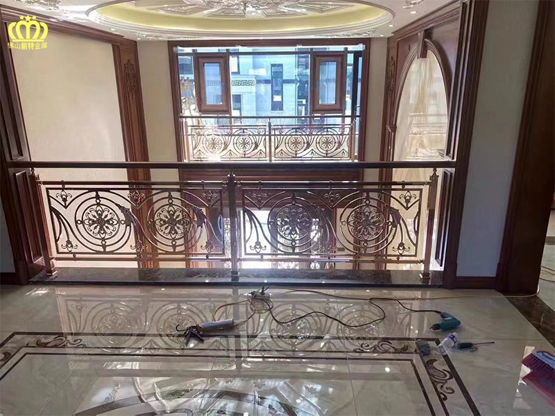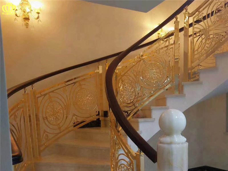 铜材进行造型与雕花装饰,所以进行弧形设计非常简单,除了立柱与扶手部分的搭配之外,在雕花主体的设计风格方面,可以很容易实现转角和弧形设计,适应不同的环境特点。在设计与施工过程中,都不需要担心实际的环境变化带来的难度标准,可以很轻松的完成。