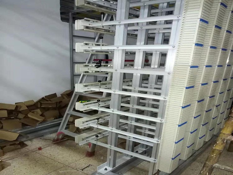 即将各已装配好的直列装到底座上。也应如安装列架一样,隔几列装一列。装好后,在顶上将上梁