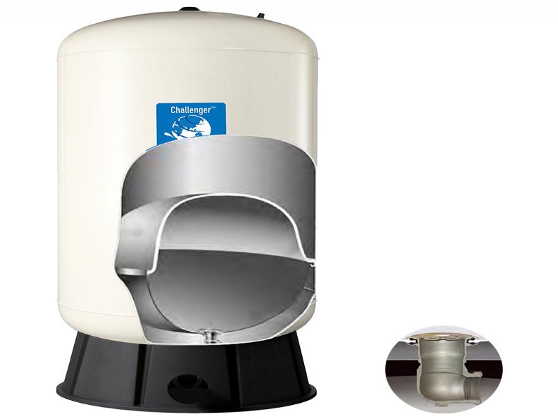 压力罐具有高性能、高性价比的特点,设计采用FDA认证的获得专利CAD-2隔膜。其具有100%抗氯的丁基橡胶隔膜并带有精确注塑的天然聚丙烯内衬,可提供超强的水/气隔离。