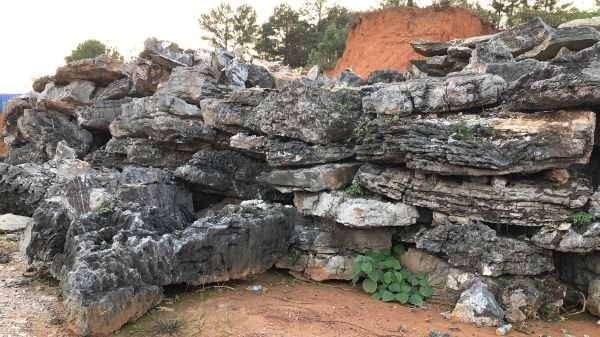 石灰石山,自然崩落后的石块,有的散布地面,有的埋入土中,经过阳光曝晒风化、或箭雨刀风冲刷、或流水侵蚀等作用,使之形成奇形怪状的石块,具有物的观赏值,自古至今深受奇石爱好者青睐。 在英德市区东北二十里,有一座山名叫英山,它高七十余丈,是一座石灰岩质石山。由于表石层经历长期自然风化,形成多姿多彩的英石。英德的英字,也缘英山而称。英山盛产的英石,有阳石和阴石之分。出土者为阳石,质地坚硬,色泽青苍,扣之清脆。入土者为阴石,质地稍润,色有微青和灰黑,扣之皆有韵声。英石褶皱细密,迂回曲至,形如云立,纹比波摇,具有皱、瘦、透、漏四妙特色。