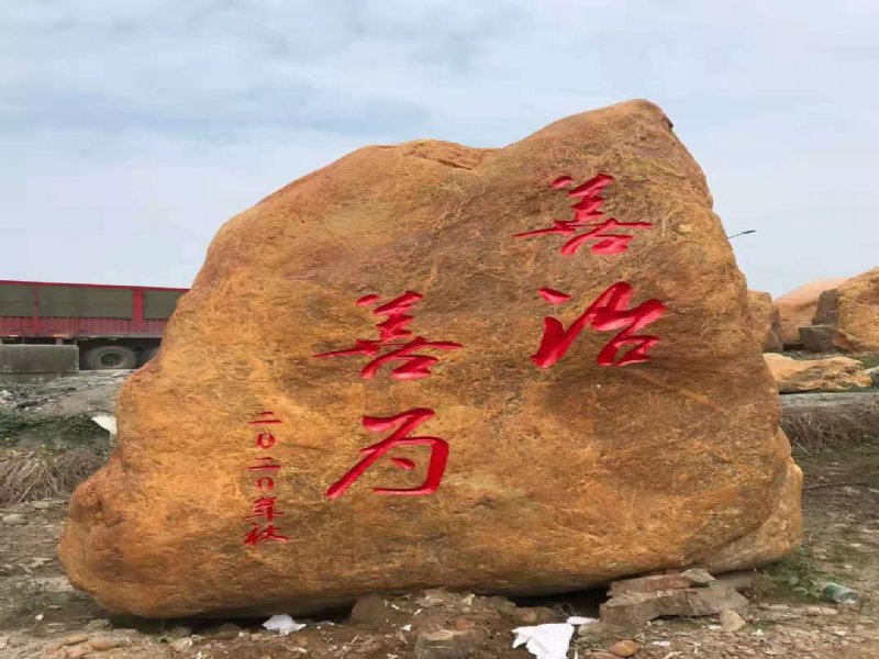 黄蜡石的应用范围十分广泛,很多公园广场,企业园区,居民社区都会选择一些美观的自然黄蜡石来刻上字体,大气美观,可以很好美化环境,又可以作为标志性建筑物,引人瞩目。