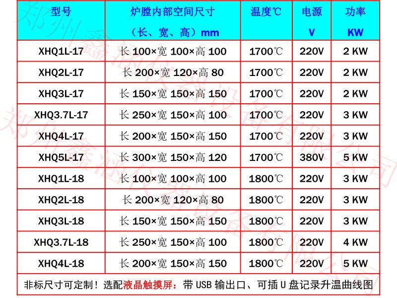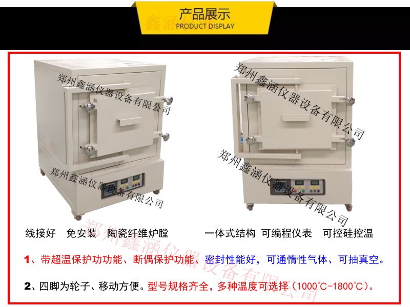 硅碳棒为加热元件,采用双层壳体结构和40段程序控温系统,移相触发、可控硅控制,炉膛采用1600型
