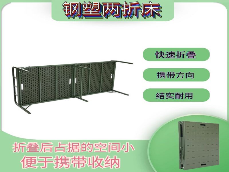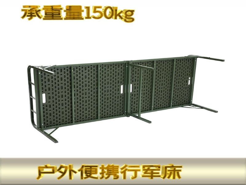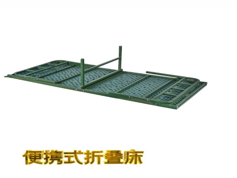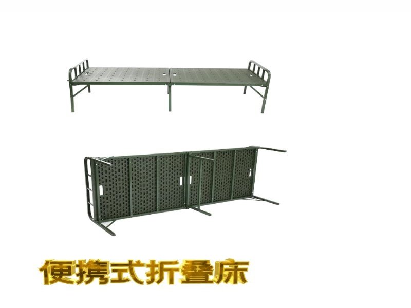 钢塑行军床 简易军绿便携式户外两折床 野外训练救灾单人钢塑床