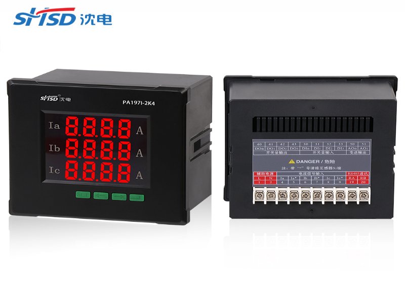 ▲ 三相数显电流表采用交流采样技术,能分别测量电网中的电流、电压、功率、功率因数和电能等参数。可带RS485通讯接口/Modbus-RTU协议、模拟量数据转换、开关量输入/输出等功能,实现电力参数、电气元件工作状态的远程传输,便于后台监控系统集中检测。