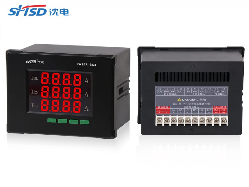 电流表采用交流采样技术,能分别测量电网中的电流、电压、功率、功率因数和电能等参数。可带RS485通讯接口/Modbus-RTU协议、模拟量数据转换、开关量输入/输出等功能,实现电力参数、电气元件工作状态的远程传输,便于后台