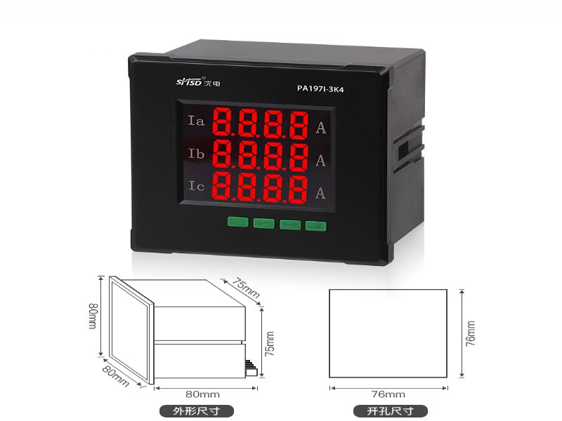 继电器输出、模拟量输出及通讯(RS485 MODBUS-RTU协议),提供多种不同的安装尺寸,可直接替代模拟指针电流表。