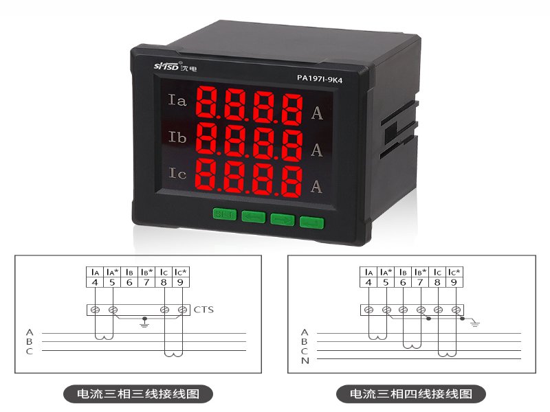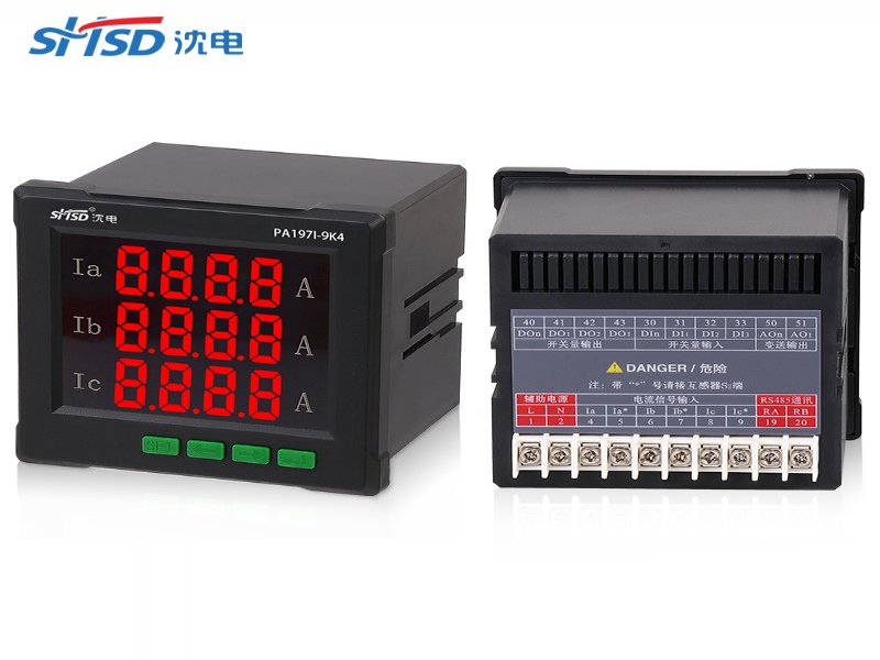 电流表采用交流采样技术,能分别测量电网中的电流、电压、功率、功率因数和电能等参数。可带RS485通讯接口/Modbus-RTU协议、模拟量数据转换、开关量输入/输出等功能,实现电力参数、电气元件工作状态的远程传输,便于后台