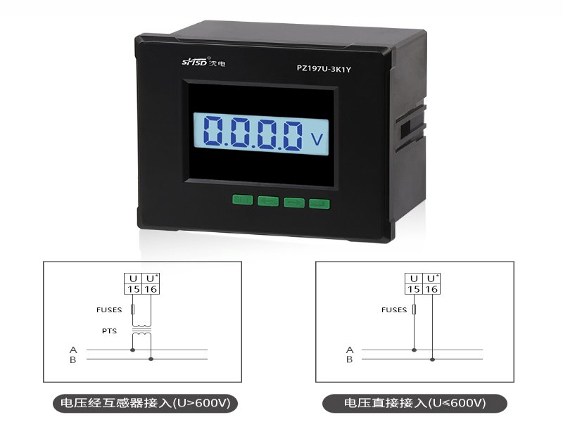 电压表采用交流采样技术,能分别测量电网中的电流、电压、功率、功率因数和电能等参数。可带RS485通讯接口/Modbus-RTU协议、模拟量数据转换、开关量输入/输出等功能,实现电力参数、电气元件工作状态的远程传输,便于后台