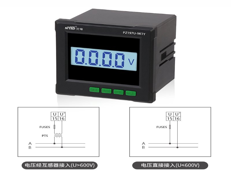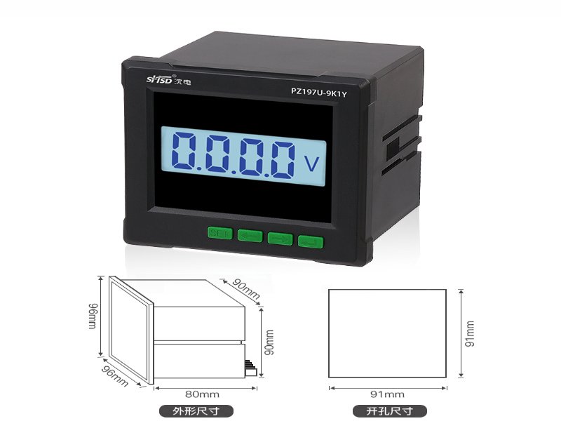 电压表采用交流采样技术,能分别测量电网中的电流、电压、功率、功率因数和电能等参数。可带RS485通讯接口/Modbus-RTU协议、模拟量数据转换、开关量输入/输出等功能,实现电力参数、电气元件工作状态的远程传输,便于后台