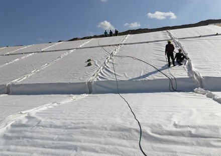 一布一膜在现场施工是一般情况是有土工布的一面在上面,因为土工布能起到保护