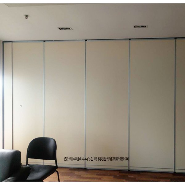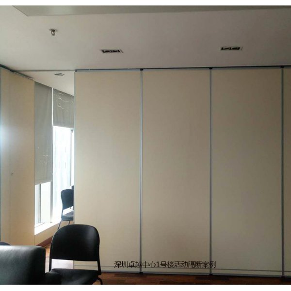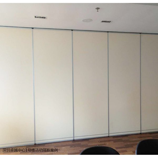 会议室移动折叠隔断墙可应用于会议厅,酒店,展览厅,餐厅,办公室等场所,是一种根据活动或工作的需要而随时能把大空间分割成小空间或把小空间连成大空间,具有一般墙体的功能的活动墙。 此墙无地轨道,而是安装于