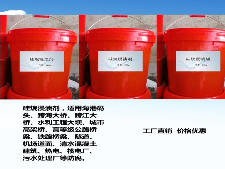 3、多次涂抹:硅烷浸渍剂(膏体)用法和用量。硅烷浸渍剂(膏体)建议用量按300/㎡施工,高性能混凝土由于密实度高,吸收速度慢,一次施工用量不宜超过200g/㎡,若过量涂抹,会导致膏体损失加大;硅烷浸渍剂(膏体)一般只需施工一遍,如确需喷涂第二遍硅烷膏体,可在一次喷涂施工6-8小时后,待混凝土构件表面干燥后施工,或在厂方技术人员指导下施工。硅烷浸渍剂(液体)用法和用量。喷涂硅烷浸渍剂(液体)两遍,每遍喷涂量为200-300g/㎡,间隔时间为2小时以内,以达到更高的渗透深度。