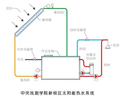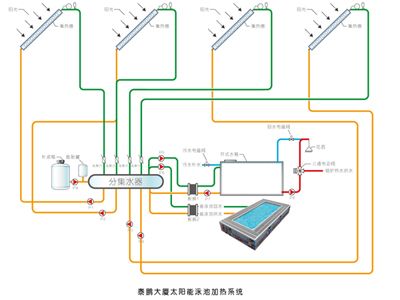 集中式太阳能热水集热系统图示(泳池太阳能系统解决方案)