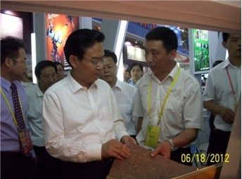 省领导参观欧诺创能展位,对于我司楼饰贴产品也给予很大的肯定以及关注。省长苏树林在我司李斯龙董事长的陪同讲解下,对于我司楼饰贴产品赞誉有加。