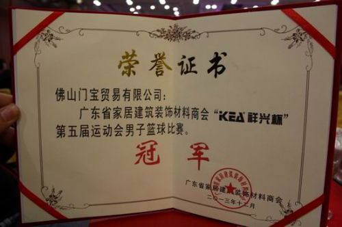 佛山门宝参加广东省家居建筑装饰材料商十二周年晚会暨第五届“祥兴杯”运动比赛颁奖晚会