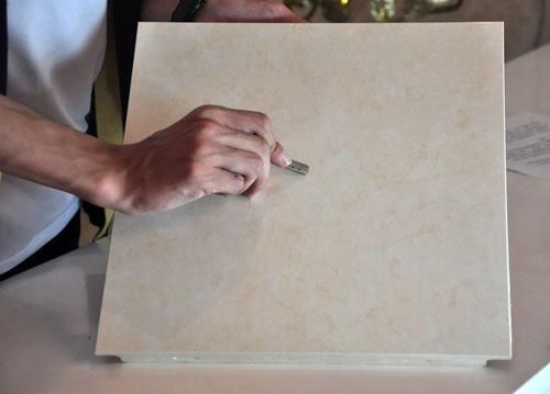 抗油污测试:用一把金属钥匙在扣板上来回刮擦