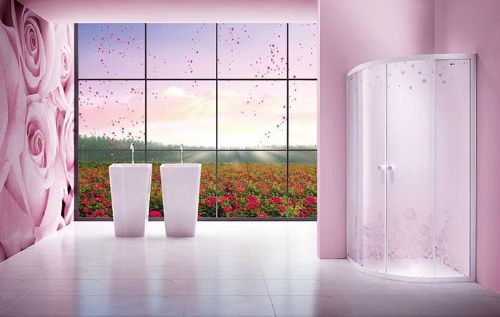 玫瑰岛创先将真空磁镀技术应用于淋,浴房玻璃上,采用美轮美奂镜面图案,让淋浴房成为一件时尚品、艺术品。