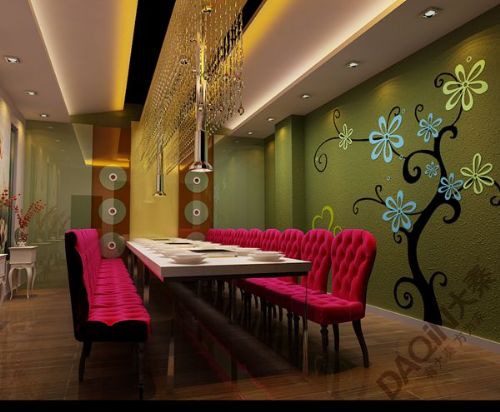 在就餐的环境中,墙壁以棕色、黄、肉色为主,能促进食欲,令人精神焕发;但是,灰色、芥茉黄色、紫色和青绿色,从色彩心理学上分析,可能会使人减小食欲,甚至倒胃口;如果餐厅中多以蓝色、绿色为主,也可能使人减少进食,但并不会影响胃口。