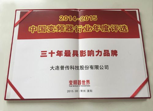 变频电源与电力传动专委会等联合举办的“第12届变频器行业企业家论坛”在常州美丽的溧阳天目湖召开,大连普传科技股份有限公司经过组委会组织的网上投票、专家评审,以及客户的认可,荣获“中国变频器行业30年*具影响力品牌”奖。