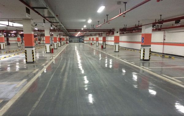 若是在雨季,地下停车场铺设了环氧地坪后的优势更加明显,人们从普通水泥地面或硬化水泥地面的地下停车场回家,难免会把污渍带到电梯里或大堂、家门口,造成了这些地方都是一个个肮脏脚印,而铺设了环氧地坪后可以大大地避免上述现象的出现,从而也降低了地下车库、停车场地坪二次清洁的成本。