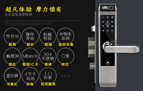 挂锁,稍有技术的人*快只需3秒就能轻松无损开锁。而有正规品牌的指纹锁都会采用超B级锁芯,若用技术开启*少需要30分钟以上。且如摩力指纹锁等知名指纹锁品牌厂家,会推出特制锁体,使锁体的防暴性能、稳定性以及耐用度更上一层楼。