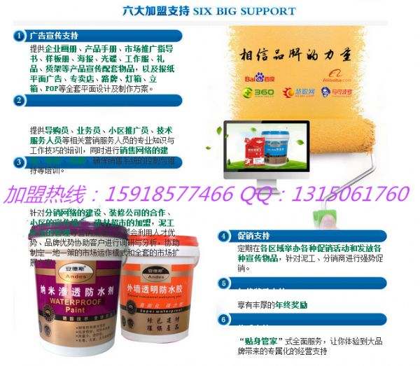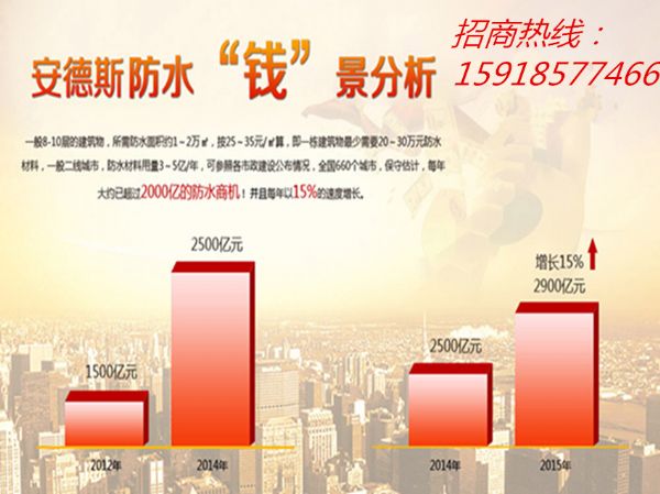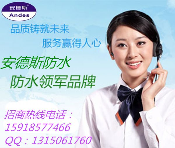 广东广州安德斯防水品牌厂家全国火热招商中,欢迎全国各地防水材料代理商、经销商、工程采购商来电咨询或来厂洽谈业务,共谋商机,共创未来!谢谢!加盟热线电话:15918577466(微信同号)黄经理 QQ:1315061760